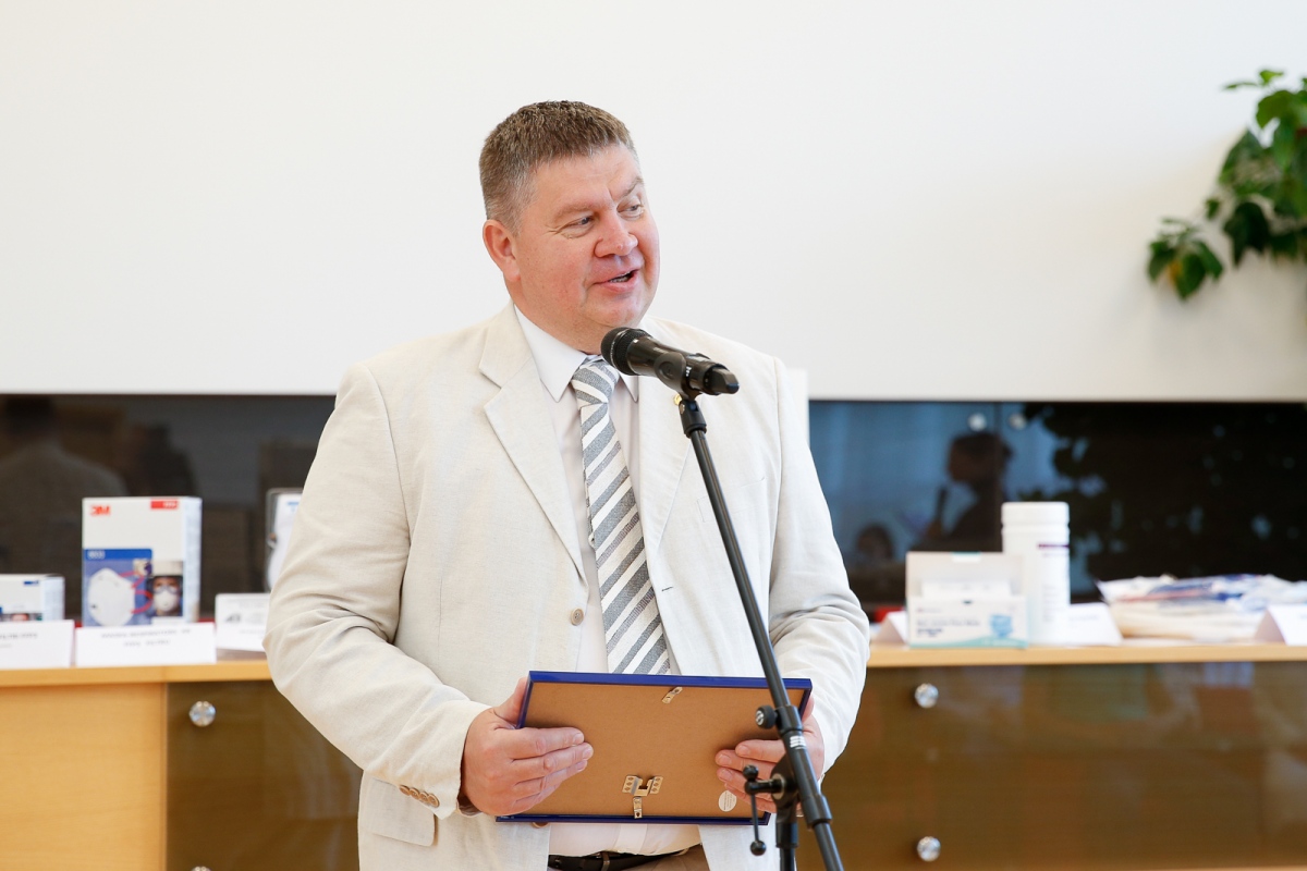 Austrumu slimnīcas valdes priekšsēdētājs Imants Paeglītis: “Austrumu slimnīcas stacionārs “Latvijas Infektoloģijas centrs” bija galvenā ārstniecības iestāde Covid-19 pacientiem. Vēlos teikt īpašu paldies par darbu mediķiem – ārstiem, māsām, sanitāriem, tehniskajiem darbiniekiem. Ir gūtas vērtīgas atziņas – kā palīdzēt pacientiem un kā mazināt mediķu inficēšanās riskus. Esam pateicīgi uzņēmumam “Latvijas gāze” par šo mērķziedojumu un personiski Aigaram Kalvītim par pieņemto lēmumu atbalstīt slimnīcas darbu. Šis atbalsts ir būtisks Latvijas medicīnas sistēmas stiprināšanai. Tagad mūsu rīcībā ir iegādātas inovatīvu tehnoloģiju iekārtas un medicīnas ierīces, kas mediķu ikdienu padarīs drošāku. Arī pacientu ārstēšana un aprūpe kļūs drošāka. Paldies par atbalstu!”