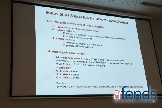 Jaunajās Rīgas Stradiņa universitātes Studiju centra telpās Rīgas Austrumu klīniskajā universitātes slimnīcā (Austrumu slimnīca) Hipokrāta ielā 2, Rīgā, Iekšķīgo slimību katedra kopā ar Afondu organizēja profesora Jūlija Anšeleviča vārdā nosaukto terapijas olimpiādi „Zelta stetoskops”. Šī bija jau 47. olimpiāde – pirmā tika rīkota tālajā 1970. gadā.